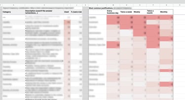 With permission from participants, every session was recorded. Combining the notes taken per session and the transcriptions from the same, I analysed the data through a combination of Thematic Analysis and Affinity Diagraming to gather insights regarding the most common patterns in participants' responses. At first, this was used to help design the survey in Stage 2; After that, the insights were compared to the results of the survey, so to understand how representative they are within our customer base.